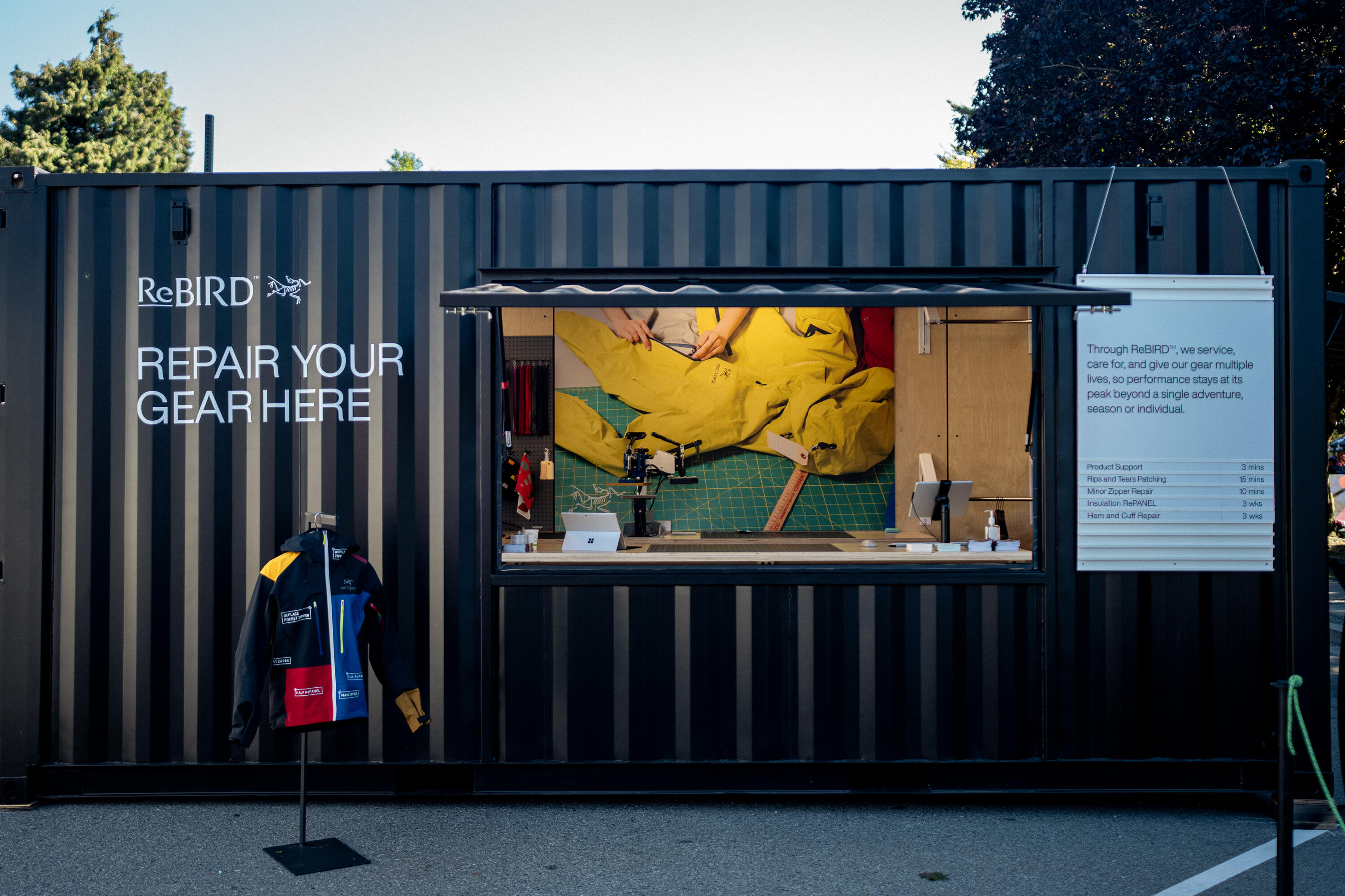 Our trained repair technicians will be onsite at the Arc'teryx ReBIRD pop up offering the following services: